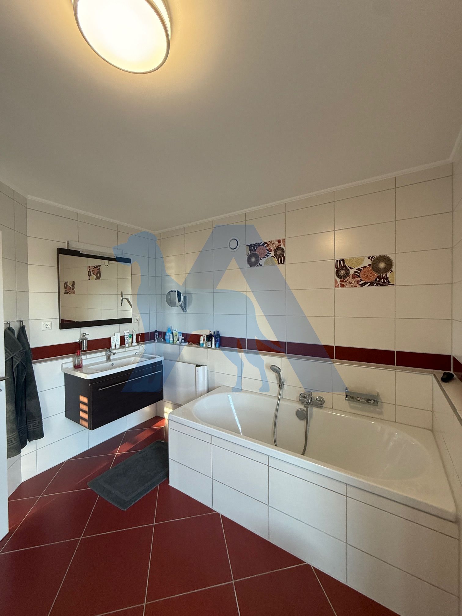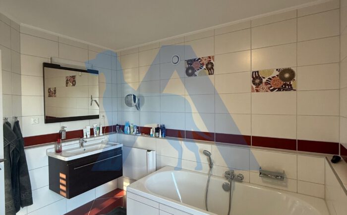 Das OG bietet ein großzügiges Badezimmer mit Dusche und Wanne, zusätzlich zwei Schlafzimmer, ein Zimmer davon mit einem Ankleidebereich.