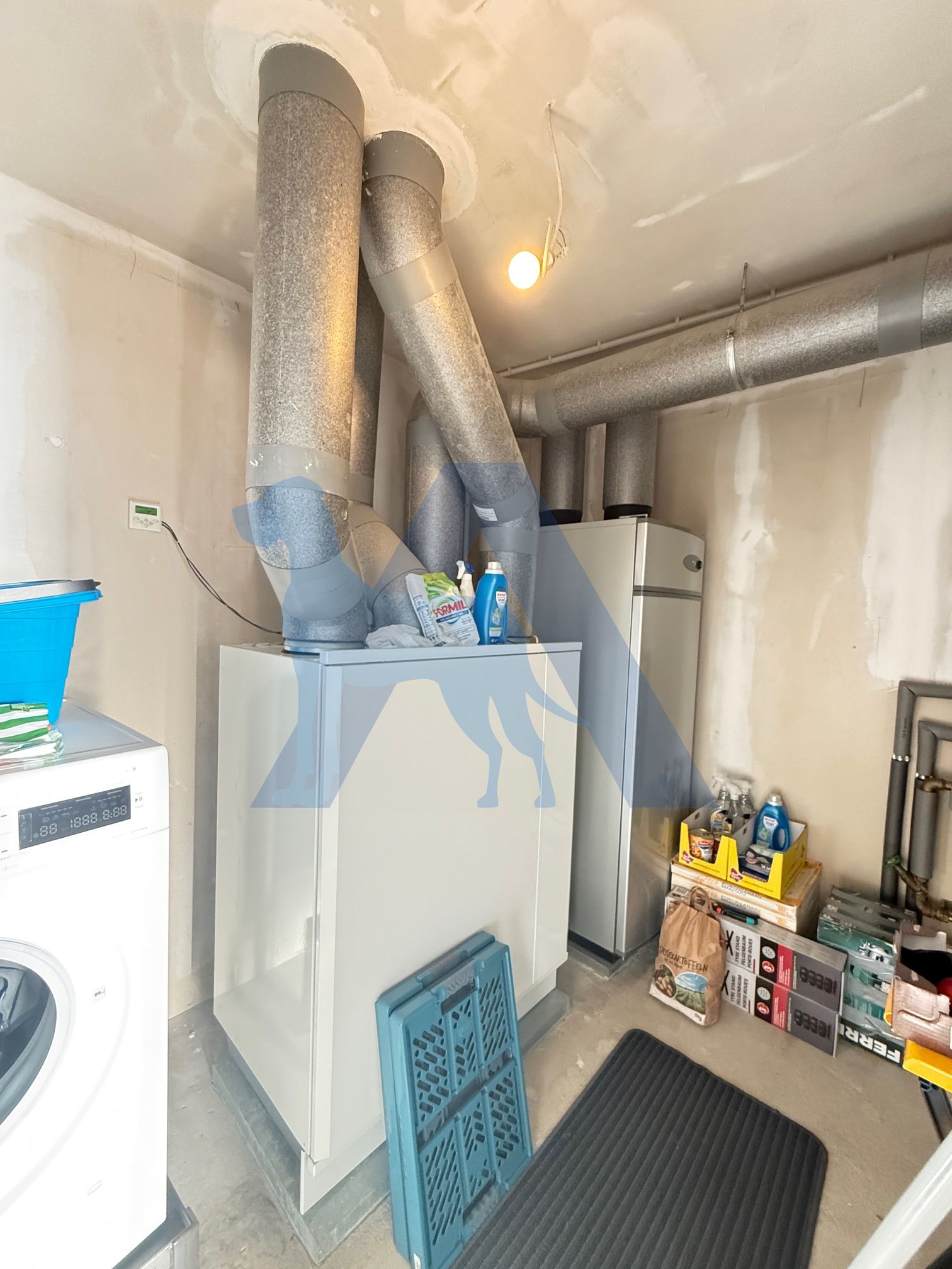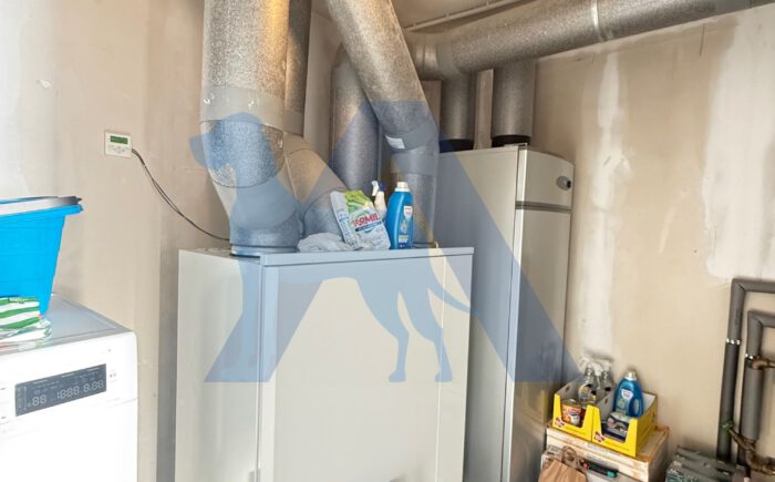 - Luft-Wärmepumpe des Herstellers Enervent und großer 300 Liter Warmwasserspeicher mit eigener Wärmepumpe