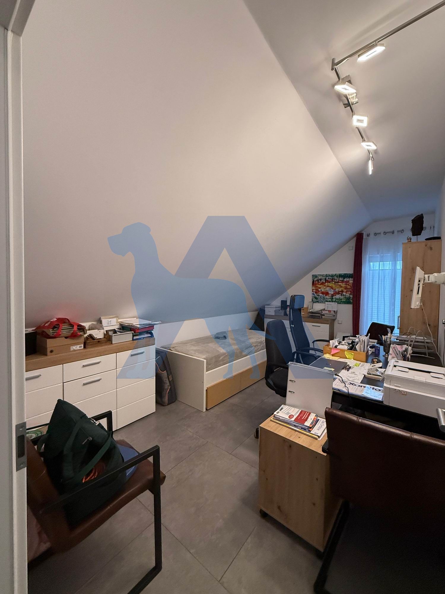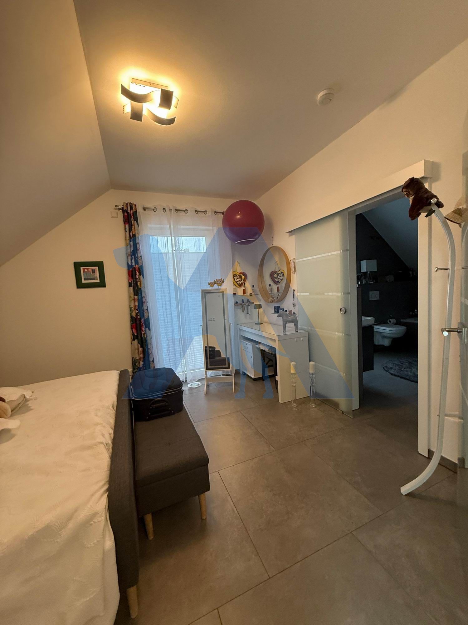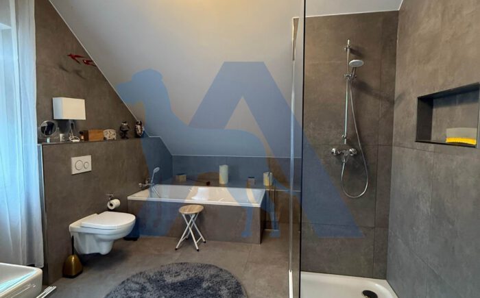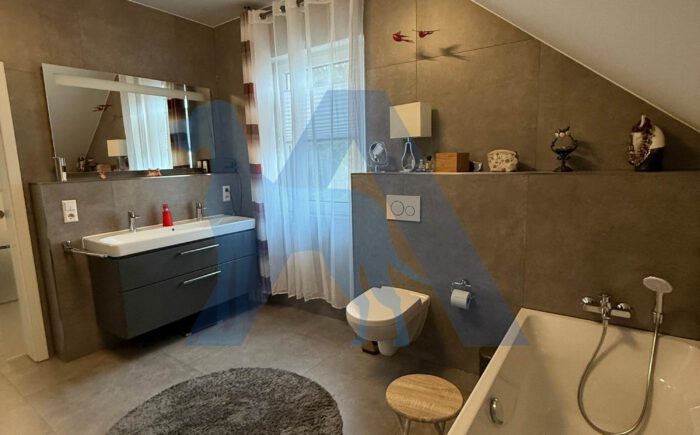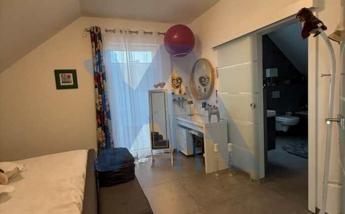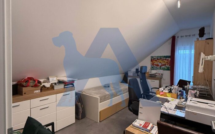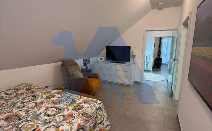 Das OG bietet ein Elternschlafzimmer mit Bad en Suite, sowie ein weiteres Schlafzimmer mit Ankleidebereich. Ein Büro, sowie ein Abstellraum runden diese Etage ab.